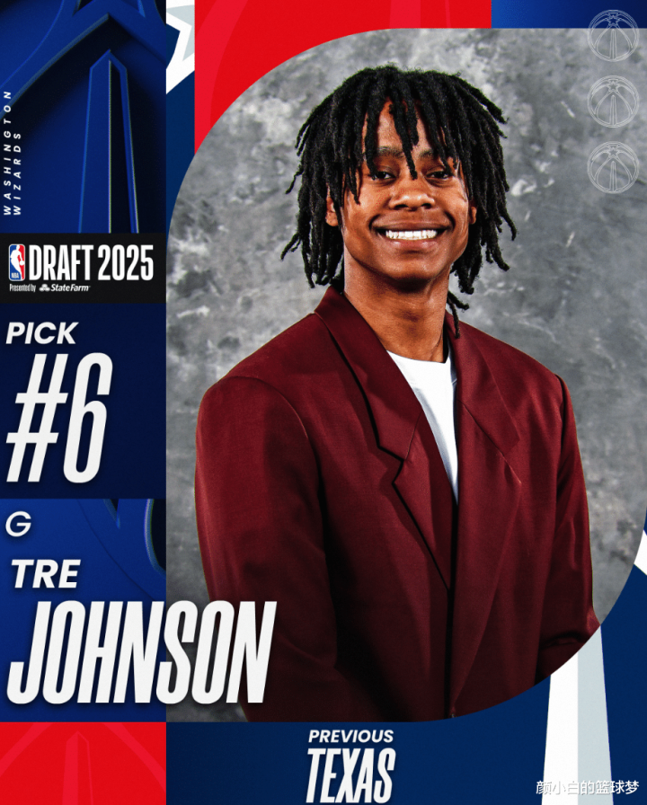 奇才用第六号签选中了特雷-约翰逊,这位来自德克萨斯大学的后卫得分能力十分爆炸,场均三分命中率超过四成。