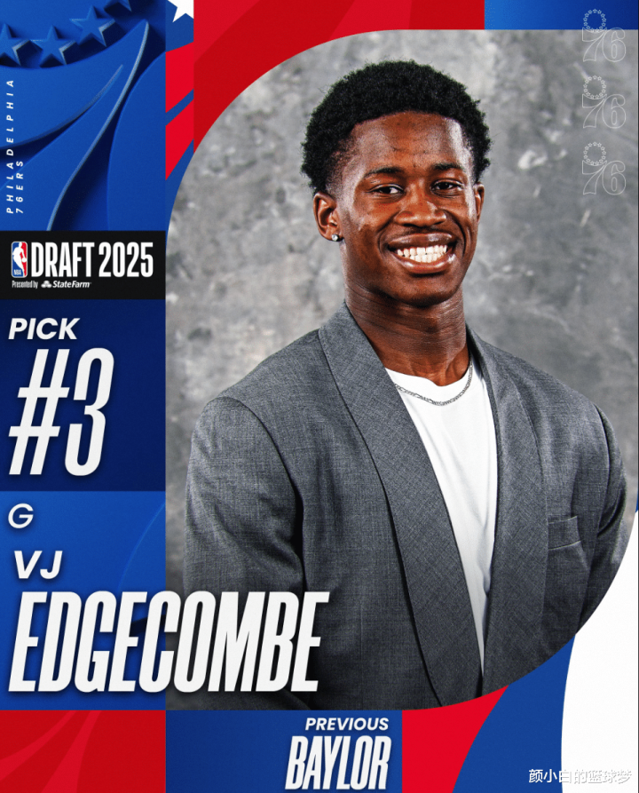 费城用探花签选了来自贝勒大学的后卫VJ-埃奇库姆,埃奇库姆是一位后场防守悍将,他甚至可以防到三号位,他有点像阿门与奥萨尔。