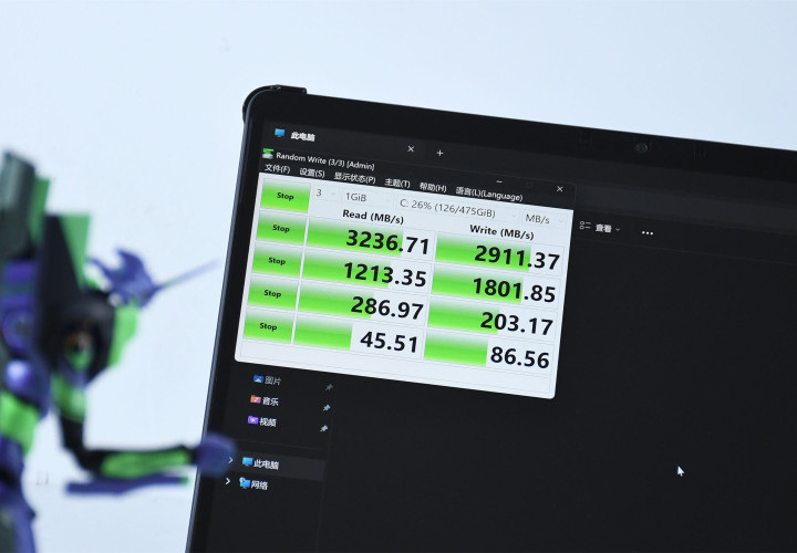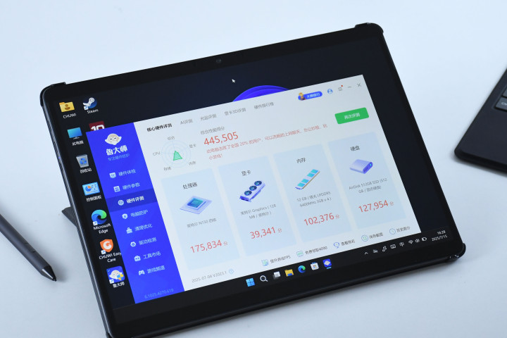我用鲁大师对Hi10 Max进行了硬件评测,最后成绩在445505,单从这个成绩来讲,满足日常的轻办公以及轻量游戏,可以说没有太大压力,同时也能看到Hi10 Max搭载了来自镁光LPDDR5 6400MHz的内存。