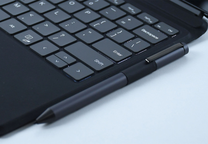 在键盘右侧位置还设有一个用于收纳手写笔的位置,感觉考虑挺周全的,可以在一定程度上防止笔弄丢。说实话,我之前也体验过类似设计以及价位的同类型二合一产品,都没有像Hi10 Max这样考虑周全。